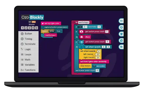 On-screen with Ozobat Blockly or screen-free with color codes.